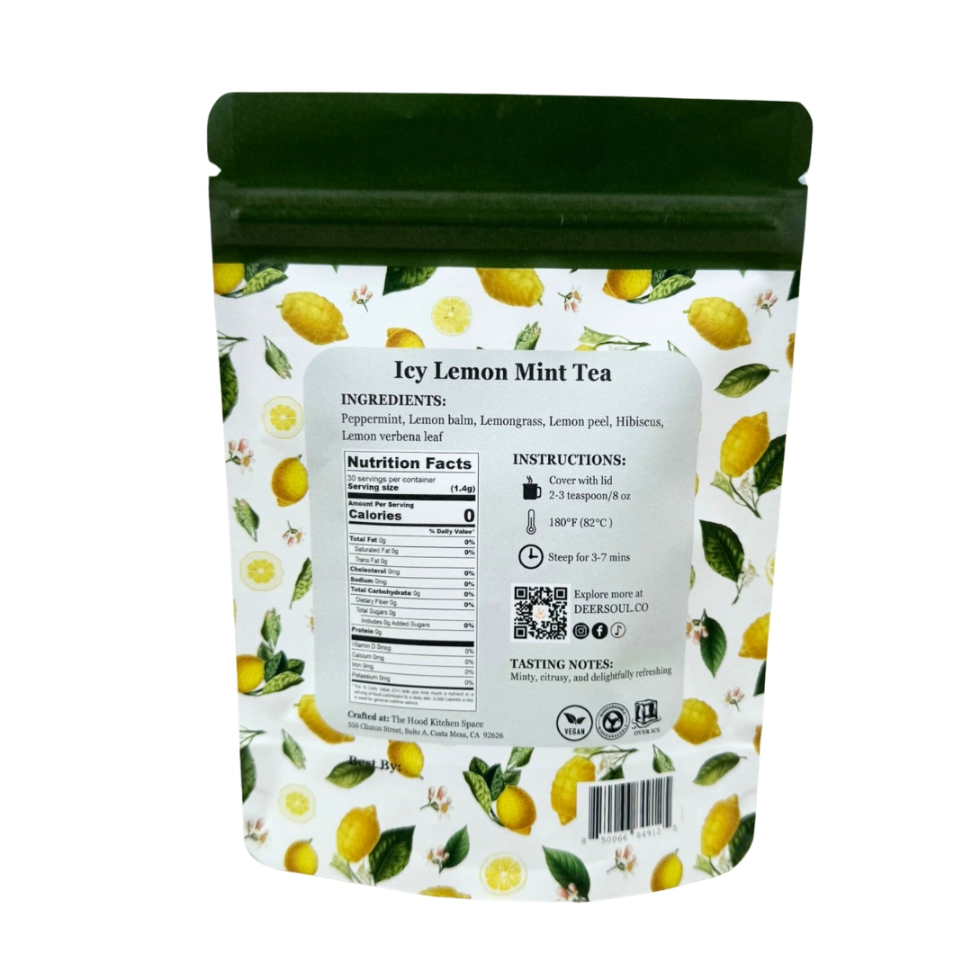 Ingredients: Peppermint, Lemon balm, Lemongrass, Lemon peel, Hibiscus, Lemon Verbena Leaf