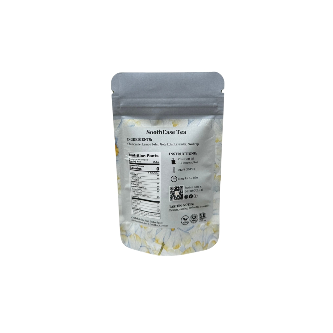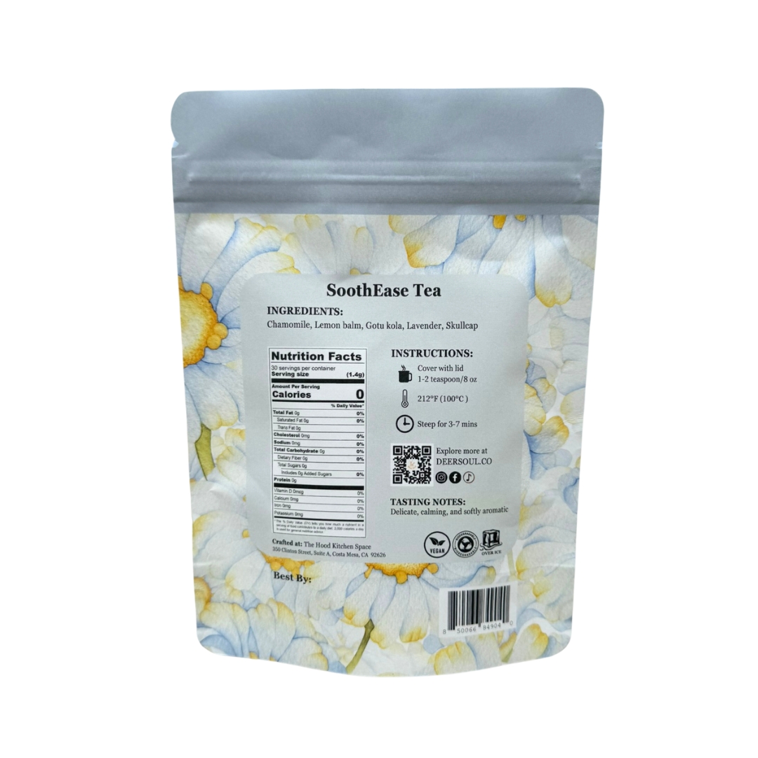 A soothing blend with floral chamomile, calming lavender, and the delicate sweetness of lemon balm, enhanced by the earthy, slightly bitter notes of gotu kola and the subtle herbal undertones of skullcap.